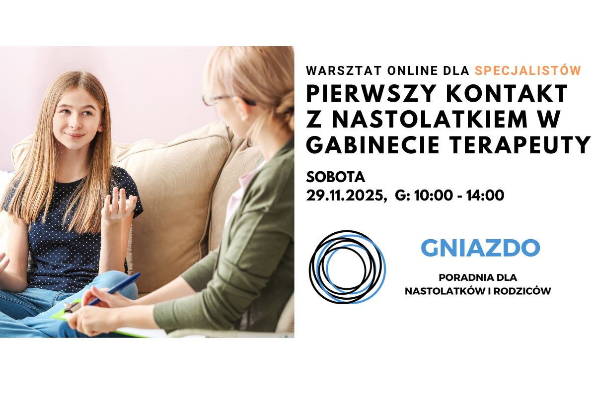 Gniazdo Poradnia online dla nastolatków i rodziców zaprasza na warsztat online dla specjalistów pracujących z młodzieżą pt. „Pierwszy kontakt z nastolatkiem w gabinecie terapeuty”